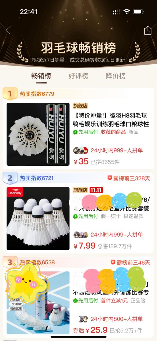 徽羽系列的H8榮獲拼多多羽毛球暢銷版第一名